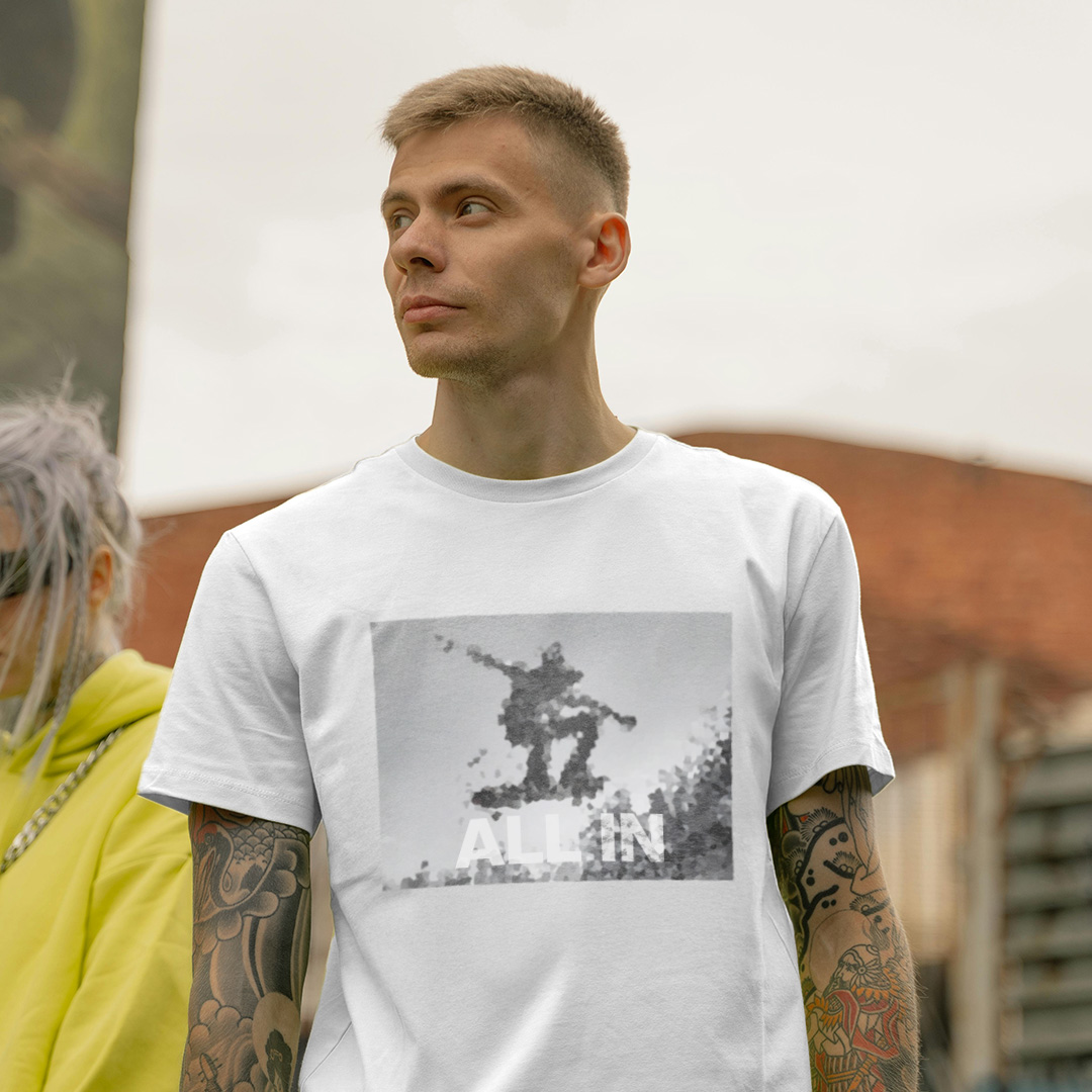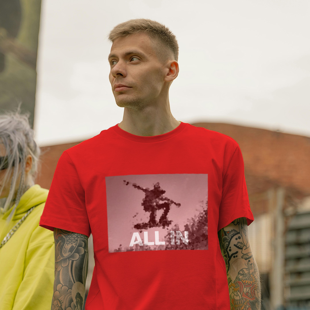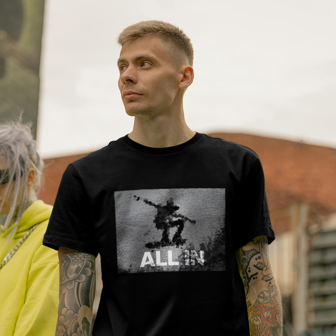 No hay medias tintas cuando el suelo tiembla bajo tus ruedas. “All in” es más que una actitud: es lanzarse sin frenos, sin dudas, sin miedo. Esta camiseta vibra con esa energÃa que solo entiende quien vive el deporte a fondo. Porque cuando te la juegas de verdad, solo hay una forma de hacerlo: a lo grande.